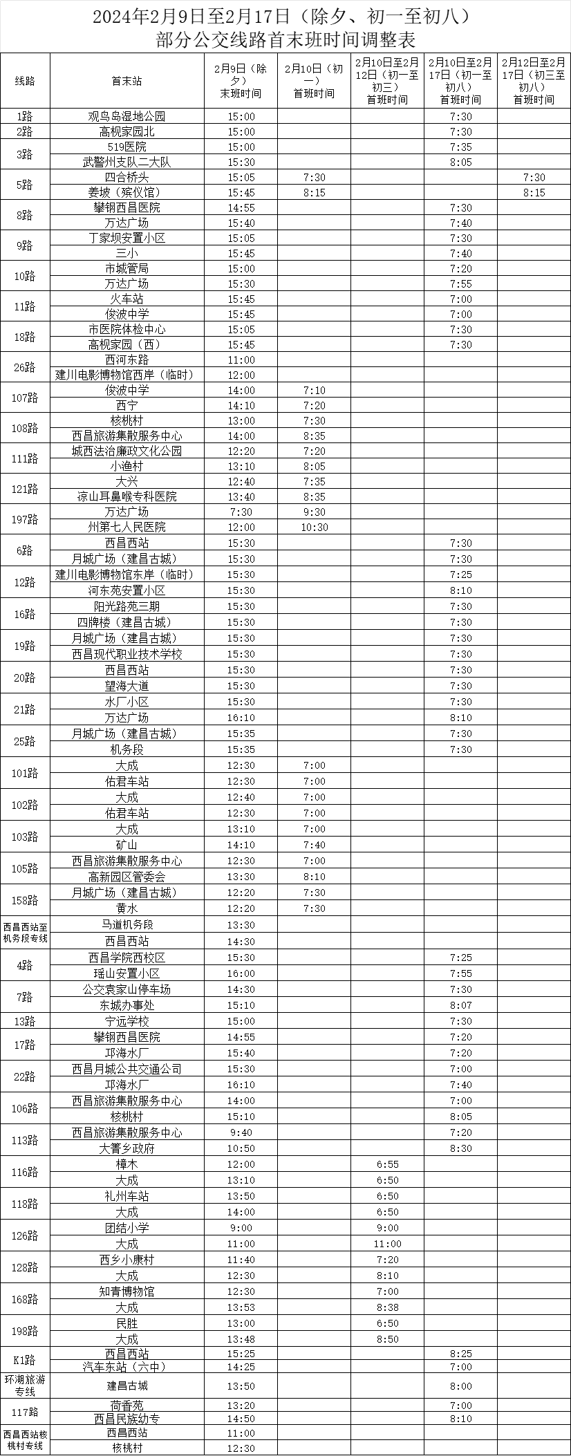 202几年大年三十、初中一年级至初八大部分工交高压线路首末班耗时有进行调节 ​​​